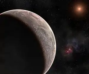 Gliese 581c is an extrasolar planet (or exoplanet) orbiting the red dwarf star Gliese 581 at 20 light-years from Earth. It appears to be in the circumstellar habitable zone (or ecosphere, or "Goldilocks Zone"), a notional spherical shell of space surrounding stars where the surface temperatures of any planets present might maintain liquid water. Liquid water is considered vital for extraterrestrial life because of its role as the solvent needed for (known) biochemical reactions. As such, Gliese 581c is one of the first truly "Earthlike" planets discovered outside of the Solar System.