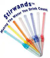 Quantum Stirwands™ are pieces of plastic with sparkles in the base whose sole function is to make its producers a killing by cashing in on how stupid most of us humans are. By sticking them into water or another liquid and stirring, they produce... water that's been stirred by a plastic stir stick. Using a McDonald's plastic coffee spoon would be cheaper and would provide the same magic effects as this quantum technology, which are zero since plastic stir sticks cannot perform magic. According to Quantum Age Water, a company founded by David Schneider, these sticks can even turn a cheap bottle of Night Train into a $45 Bordeaux, so the bargain purchase price of €54.62 (ex. VAT) will pay for itself almost immediately. Perversely, Americans have to stump up a staggering $89.95 (USD) for one.[2] They come in different colours with different purported qualities, though the only real difference is the type of dye used in their production.