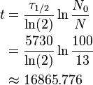 Thus the bone is approximately 17,000 years old. (Our input data had two significant figures, so reporting a more accurate result would be meaningless.)
