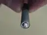 The loop contact is pressed onto the other end and a pin with a hammer is hammered onto it.