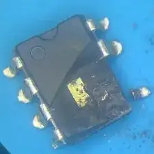 Entferne den Aufkleber in der Mitte der Oberseite mit einer Pinzette.