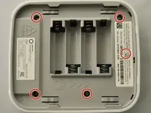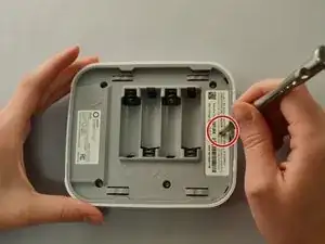 Once all five screws are removed, split the casing apart by applying gentle upwards pressure against the positive terminals in the battery compartment.