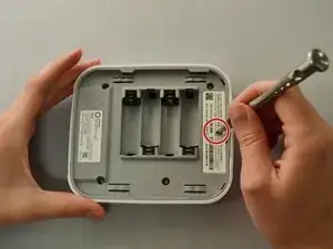Once all five screws are removed, split the casing apart by applying gentle upwards pressure against the positive terminals in the battery compartment.