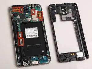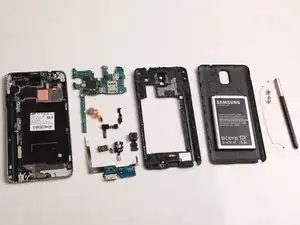 Turn the device off and use your finger to remove the back cover and battery. The Galaxy Note 3 battery is removable, making it easy to remove it without any tool.