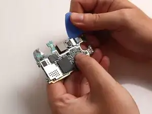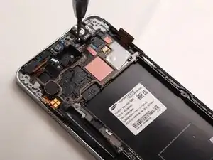 Use screwdriver to pry out the vibrating motor. Please be noted the motor is adhered to the front chassis and connected with the power button. Please lift it up carefully to avoid damaging the power button cable.