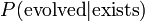 In slightly more technical terms and using conditional probability we can explain the two situations of "evolved therefore exists" and "exists therefore evolved": Let the random variable The original creationist argument is that In the straw-man version Answers in Genesis is talking about here, the counterargument is instead that |