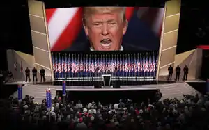 Donald Trump's final speech touched a dark and authoritarian tone, with a promise to committing to "law and order"; this was an attempt to unify the deeply divided party, touching on common themes throughout the convention and campaign.[94] He also launched an appeal to Bernie Sanders supporters who were opposed to free trade, saying that: