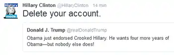 The 2016 U.S. presidential election took place on November 8, 2016, finally putting to rest fears[3] that President Obama is a commie-Muslim King doing everything possible to further rob the GOP base of their few remaining freedoms and usher in Sharia law before Hillary replaces it with Halakha.[4] Her opponent was Donald J. Trump, an unwitting hero to the thousands of Americans that enjoy writing "WHY DOES EVERYTHING HAVE TO BE ABOUT RACE?!" in the comments section of every Yahoo! article.