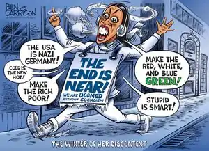 - Calling the US garbage when she was actually about her criticizing both parties for abandoning the working class[93]