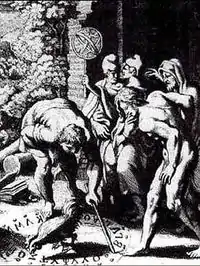 Alphabets figure in many sorts of divination, including the casting of runes and the use of the Ouija board. The twenty-two "Major Arcana" trump cards of the Tarot deck are thought to correspond to the twenty-two letters of the Hebrew alphabet, but there are several competing assignments.[19] One form of alphabetic divination is called alectryomancy: here, the alphabet is drawn into a circle; a kernel of grain is placed near each letter, and then a (presumably both literate and psychic) chicken is placed in the circle. The letter chosen by the chicken is thus freighted with divinatory meaning.