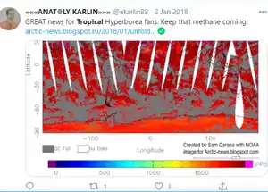 Karlin has made a bunch of irrational tweets where he disregards the harmful effects of global-warming and wants to increase carbon and methane emissions in Northern Europe, Greenland and Russia as a "Tropical Hyperborea":
