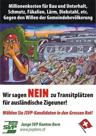 - https://www.watson.ch/schweiz/gesellschaft%20&%20politik/101758822-zwei-mitglieder-der-jungen-svp-fuer-zigeuner-plakat-verurteilt-die-reaktionen-im-video