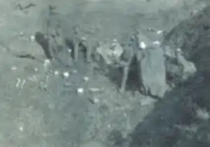 Furthermore, it is usually conveniently forgotten by Turkish apologists that a significant portion (in fact, probably a majority) of Muslim deaths in Anatolia during the First World War were caused by seizures of property and food by the Ottoman government, which even forced Muslim poor and peasants to be worked to death in forced labor gangs (along, of course, with Christians).[29] Similarly, the massive quantities of dead bodies from victims of genocide lead to considerable Muslim deaths from disease due to all the rotting flesh.[30] The amnesia over these events, with the corresponding shift of blame onto "Armenian gangs", is therefore a convenient method of hiding embarrassing and unappetizing history. Additionally, Turkish historians have taken to exhuming the mass graves of dead Armenians slaughtered in the genocide and portraying these as corpses of Muslims in order to pretend the perpetrators of the genocide were in fact its victims.[27]
