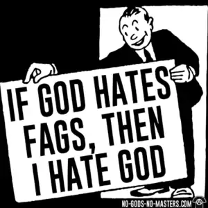 The phrase "atheists hate god(s)" (AHG) is a fallacious anti-atheist argument which attempts to label atheism as a mere emotional opposition to god(s), rather than a reasoned denial of the existence of said god(s). Atheists do not deny the existence of god(s) because they "hate god(s)" or "want to live in sin", because atheists don't believe in these things, any more than Christians hate, say, the gods of Hinduism. If they're mad, generally they're pissed at something a religious person or group has done.[note 1] (Maybe they even came to the atheist fold via the route of anticlericalism.) After claiming that atheists hate god, many writers go on to attack "militant" atheism and New Atheism.