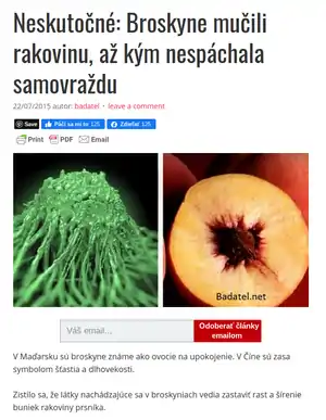 Badatel.net je najhoršia šarlatánska stránka na slovenskom internete. Nájdete tu úplne absurdné spôsoby, ako neliečiť rakovinu, homeopatiká,[2] strašenie pred vakcínami, konšpirácie o farma firmách, až po strašenie pred darovaním orgánov a konšpirácie a klamstvá o pandémii COVID-19.