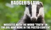 Badger's Law states that the content of any website which contains the word "truth" in its name or URL contains anything but that. The law states: