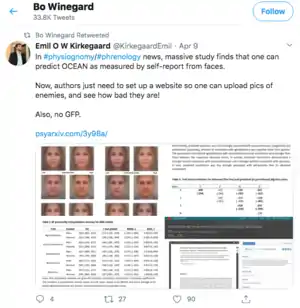 Winegard has supported Emil Kirkegaard, an individual who has been described as "so toxic in mainstream academia that even being associated with him can sink your career."[27] Kirkegaard is a self-described eugenicist and white nationalist who claims Western governments should be paying white people to breed more. In a bunch of tweets, Winegard originally defended Kirkegaard, claiming he has seen no evidence Kirkegaard is a racist: