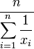 The mean obtained by taking the reciprocal of the arithmetic mean of the reciprocals of a set of (nonzero) numbers. One of the most memorable uses of the harmonic mean is in physics, where the equivalent resistance of a set of resistors in parallel is the harmonic mean of their resistances divided by the number of resistors. The same principle applies to capacitors placed in series. The mathematical formula can be expressed as:
