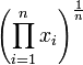 All the values are multiplied and then the nth root is taken (where n is the total number of scores). Useful in some geometric (heh) contexts; for example, the area of an ellipse is equal to that of a circle whose radius is the geometric mean of the ellipse's semi-major and semi-minor axes. Has the neat property of being equal to e raised to the arithmetic mean of the natural logarithms of the values being averaged. (The same principle holds for other bases, so for example it could be defined as ten raised to the arithmetic mean of the common logarithms.) The mathematical formula can be expressed as: