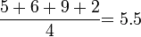 The arithmetic mean is easily calculated by summing up all scores in the sample and then dividing by the number of scores in that sample. The mean for the sample 5, 6, 9, 2 would therefore be calculated as follows: