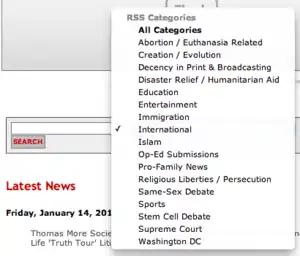 Many mainstream outlets are listed on their site - such as MSNBC and BBC. Whether or not Christian Newswire releases are commonly read or acted-upon is unclear. Their client list features an oddly large number of organizations with "family" in their names, including the hilariously named Catholic Family and Human Rights Institute.[7] They provide a list of "exclusive media contacts" where they have mysteriously unnamed journalists interested in conservative news, including the BBC and the popular British purveyor of despair and middle-class moral outrage, The Daily Mail.