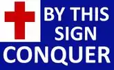 Overton's flag did not become popular until the Second World War. During the First World War, the "Christian Conquest Flag," created by S.M. Johnson in 1901 and adopted by the International Sunday school convention in 1902[4], became popular among some American Christians. Johnson's Christian flag included a blue background with a white canton in the upper left corner containing a red cross. On the blue field is written, "By this sign conquer" (Latin, In hoc signo vinces) whose meaning Christ allegedly explained to Constantine I in a dream around the 4th century CE.