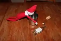 - The story of a jolly fat man dressed in red (depending on where you ask; other depictions of Santa are far more modest), driving a flying sled and bringing presents created in a workshop full of elves to children through their chimneys.