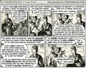 Many people use the expression "begs the question" to mean "raises the question" - in the sense that they believe an important point is being overlooked in the argument given (i. e. petitio principii veri/recti, which is not fallacious). For example; "If God created the universe, this begs the question of who created God." There are countless examples of this use, which is not incorrect despite what some anal retentive pedants might arbitrarily insist.