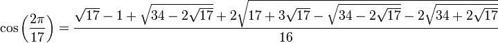 This number looks complicated, but it's something we get just by taking a bunch of square roots. So it turns out to be constructible!