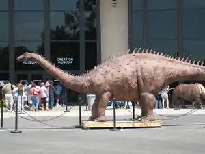 The Creation Museum was given an authentic allosaur specimen which lived and died during the Jurassic period roughly 150 million years ago died during Noah's flood a few thousand years ago and proved the flood really happened.[24] The allosaur will teach children and adults young earth creationism.