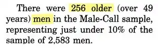 This article debunks misleading statistics claiming that large portions of gay men have 500 or 1000 sexual partners, or simply hundreds of partners. The statistics are cherry picked from a 1978 Bell & Weinberg book which surveyed highly-promiscuous San Francisco Bay Area men in the 1970s, most of whom were rounded up from gay bathhouses (sex clubs), cruising spots (hookup spots), porn stores and gay bars. About 25% of the men were prostitutes, which further exaggerates the reported high number of partners.[1]:29-33 It was not a random sample and it was never intended to be representative of the wider male homosexual population, or even representative of gay men in San Francisco.[1]:22