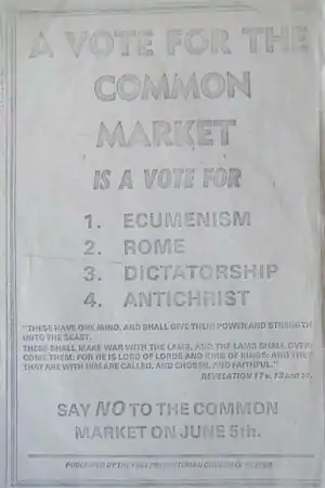 The party have advocated for Britain's departure from the European Union.[4] On the other hand, being Northern Irish, they do support free movement and travel (most of them not wanting to restart the Troubles).[5]