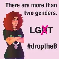 DropTheB, also known as Operation Geschlecht, is a Manufactroversy manufactured by 4chan's /pol/.[1][2][3] The campaign desires to "drop the B" from LGBT, because bisexuality allegedly implies that there are only two genders (and is thus opposed to the nonbinary movement). This argument, however, fails to address the distinction between sexual orientation and gender identity. In reality, bisexuality can mean either [1] that the person is attracted to all two sexes, [2] that the person is attracted only to people born as the same gender that they present as, or [3] that the person is attracted to all genders (i.e., pansexual). None of these positions implies that there are only two genders, though (of course) there are bisexual people who indeed think that there are only two genders.