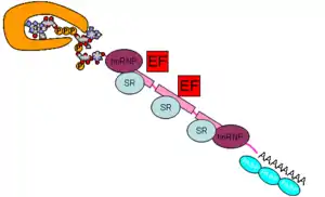 As mRNA is transcribed, it is complexed by five small nuclear ribonucleoproteins (snRNPs, also known as 'U' particles).RNAse treatment of pre-mRNA degrades pre-mRNA into heterogeneous ribonucleoprotein fragments. These proteins have a common RNA binding motif (below). Some of these hnRNPs are U-proteins, directly involved in splicing out introns, others are important for labelling introns and exons.