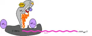 eIF1A blocks the A site. This is necessary to prevent tRNAs from binding inappropriately. This blockage forces eIF2-GTP to recruit the special initiator tRNAimet to the P site. Only tRNAimet can bind a naked SSU. eIF3 prevents binding of the SSU to the LSU. The combination of the SSU with the three initiation factors and tRNAimet is termed the 43S preinitiation complex. The fourth initiation factor, eIF4A, which is a helicase, unwinds any hairpin loops in the mRNA, exposing the start codon (AUG).