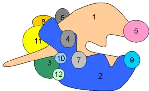 Ribosomes consist of two subunits: a larger one (the LSU) and a smaller subunit (the SSU). Both subunits contain RNA (the larger contains two or three, the smaller just one) and large numbers of proteins (which are mostly structural). The large subunit contains the active site for peptide bond formation, which is a ribozyme (catalytically active RNA) called peptidyl transferase.