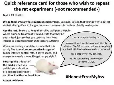 An expert panel examined Séralini's reanalysis, and decided that he was huffing a heap of hot air.[6] This didn't keep Fox News from reporting Séralini's analysis as a "bombshell" against the GMO industry, over six years later.[7]