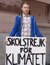 Thunberg started off by taking Fridays off school and protesting in front of the Swedish Parliament, Riksdagen, with her trademark sign "Skolstrejk för klimatet" ("School strike for the climate"). Her supportive family and some of her schoolmates joined her, and those of other schools, and thanks to social media combined with news coverage, the trend quickly spread across Sweden and around the world. She is a supporter of Extinction Rebellion