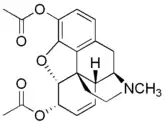 Diamorphine is a prodrug, having very little affinity for the μ-opioid receptor due to the 3-hydroxy group being acetylated, and is metabolised into morphine, 6-Monoacetylmorphine (6MAM), and 3-Monoacetylmorphine (3MAM), the most potent of which is 6MAM.[3] 6MAM is only produced as a metabolite from heroin and is therefore used as a specific test in human drug tests for heroin abuse, as other opiates such as codeine are partially metabolized into morphine.[4] Heroin is far more potent than morphine as the acetylation of the two alcohol groups makes it far easier for the molecule to cross the blood-brain barrier, where it is subsequently converted into the active metabolites.