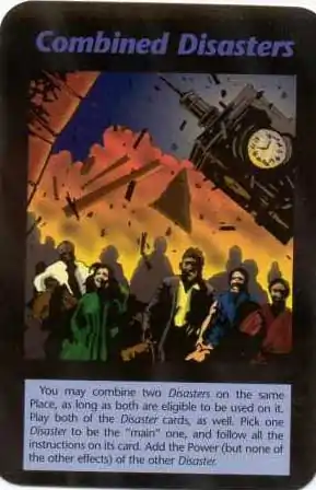 - Combined Disasters is probably the most talked-about card beyond the two that suggest 9/11. It shows several buildings collapsing, including a clock tower. At one point this was interpreted by some as predicting the 7 July 2005 London bombings, with the clock tower being Big Ben[5] (despite the fact that Big Ben was not damaged in the attack, and a terrorist attack on Parliament featured both in the cult 1973 novel Christie Malry's Own Double Entry