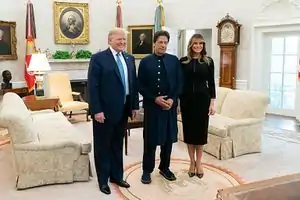 Khan met with President Trump on 21 July 2019 in the White House. The leaders decided to "reset" their relationship with each others. Trump brought up the role of Pakistan in the Afghanistan War, and a possible peace process.