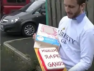 Despite trying to present himself as a moderate, Buckby was expelled from the University of Liverpool for his Islamophobic and racist views then made a video in May 2014 ranting about the university calling the decision to expel him as somehow communist.[44] In October 2015, Buckby made an appearance on the TV-documentary "Is Britain Racist?" on BBC Three.[45] The documentary exposed Buckby as a white nationalist who rejects non-white people as British, even those born in the UK, thus destroying his fake image as a moderate: