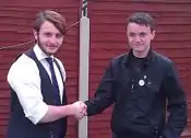In June 2012 Buckby founded the National Culturists (NC) describing it as an "anti-egalitarian and socially conservative" group for young people who oppose multiculturalism, particularly university students.[17] At the time, Buckby was a student at the University of Liverpool and attended in September 2012 a Freshers' Fair at the university to promote the NC group, but was met with anti-fascist opposition; Buckby enlisted a far-right skinhead as a bodyguard.[18][19] Despite Buckby claiming the NC was not racist, he was a member of the British National Party and the NC had strong links to the BNP.[20] Buckby in October 2012 said he considered "him [Nick Griffin] a friend."[21] Furthermore, the NC’s Facebook page contained a racist cartoon, with the phrase “White people have the right to exist as white people. Be White" and other white nationalist imagery, or slogans.[22] Buckby was exposed on Instagram posting crude racism about Obama, calling him a "nigger", as well as using homophobic slurs, criticizing interracial relationships and posting a white pride Stormfront-style cross.[23] Commentating on his personal blog, Buckby also made more racist statements such as criticizing the idea of a "coffee coloured global civilisation" through "race mixing".[24]