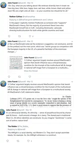 - In an email exchange about The Nature of Race, Professor of Philosophy Jonathan Kaplan remarked "Fuerst is an intellectually dishonest racist... I'm sure he has written a 100+ page article — he really seems to have nothing but time and racist animosity driving him."[15]