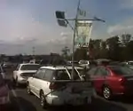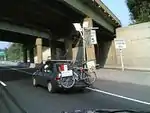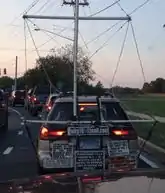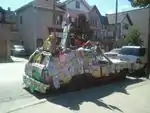 A kookmobile is a vehicle plastered with what a normal person — never mind a traffic cop — would likely consider to be an excessive amount of signs, stickers, ropes, flags and ornaments (and not during holiday season), all intended to advertise the driver's views to the public in the most lurid and convincing way possible. It can be considered a vehicle variant of Haig's Law where the awfulness of the Kookmobile's appearance is directly proportional to the insanity of its contents and creator.