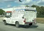 Most kookmobile displays involve Jesus and the Bible; however, adornments featuring everything from 9/11 conspiracies to Second Amendment themes have been spotted in the wild.