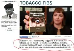 On a related note, Pickering also claimed once that tobacco smoking doesn't cause cancer. He copped a lot of abuse from his supporters for making such ridiculous comments.[11] Apparently, those remarks were "too crazy", even for their liking.