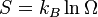 , where S is entropy, kB is Boltzmann's constant and Ω is the multiplicity of the states.