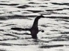 The most famous photograph of the Loch Ness Monster is the "Surgeon's Photo", taken by Colonel Robert Wilson, a surgeon (actually a gynaecologist, but that might get unexpected search results) in the British Army in 1934. Although somewhat convincing in the cropped version, a full-sized version of the photograph eventually emerged showing that the "head" of the monster was actually remarkably small. It was later revealed to be a complete hoax.[1]