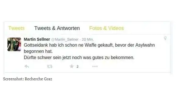 However, independent journalist Michael Bonvalot uncovered a tweet by Sellner in January of 2016 that says (translated from German):